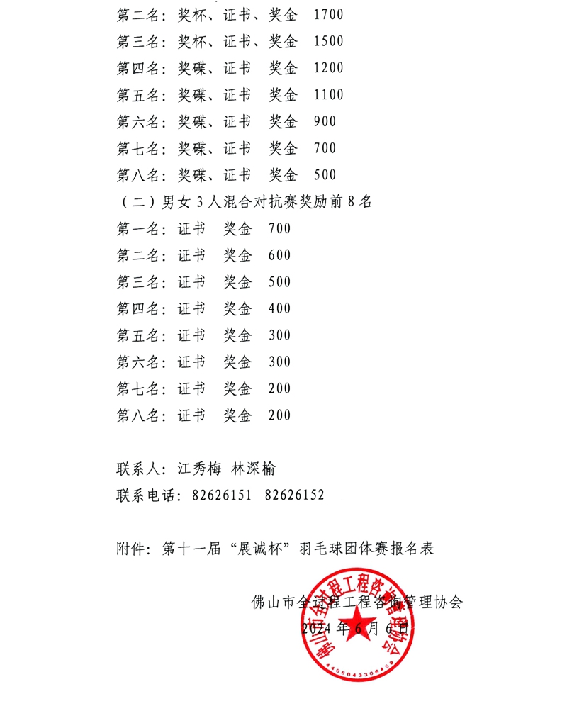 佛山市全過程工程咨詢管理協會關于舉辦第十一屆“展誠杯”羽毛球團體賽的報名通知