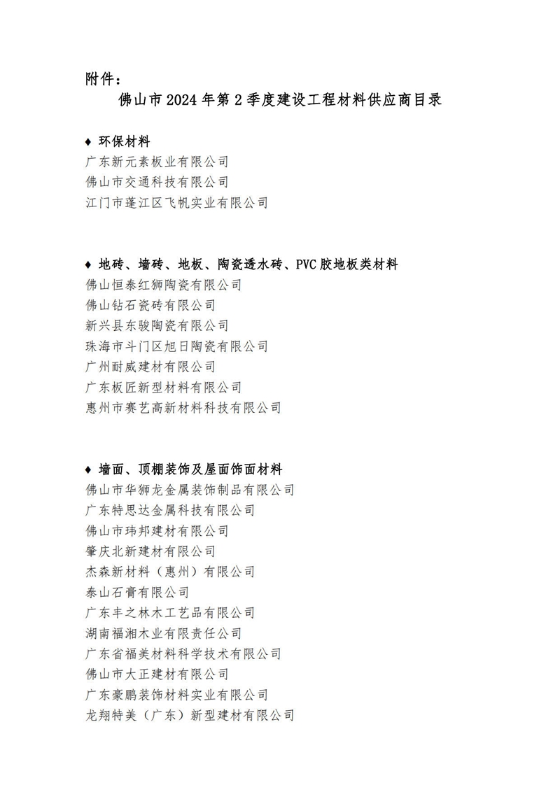 關于公布佛山市2024年第2季度建設工程材料供應商目錄的通知