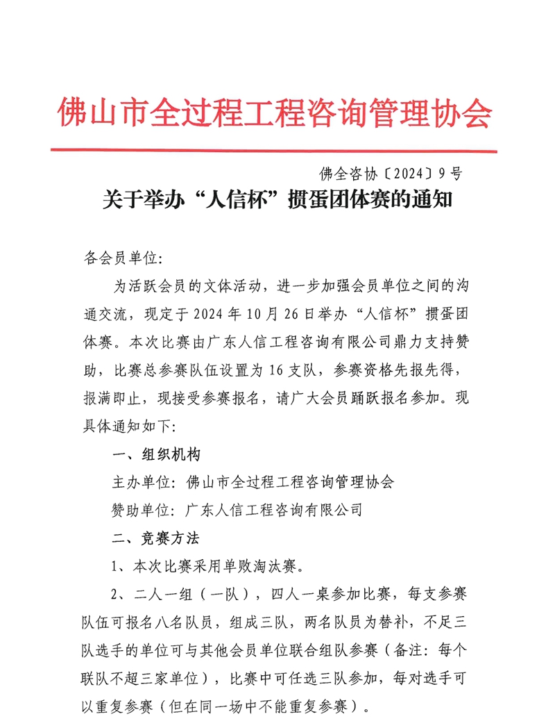 關(guān)于舉辦“人信杯”摜蛋團(tuán)體賽的通知