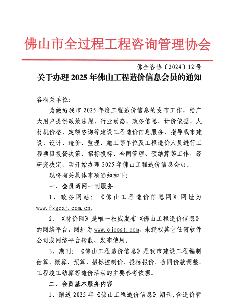 關(guān)于辦理2025年佛山工程造價(jià)信息會(huì)員的通知