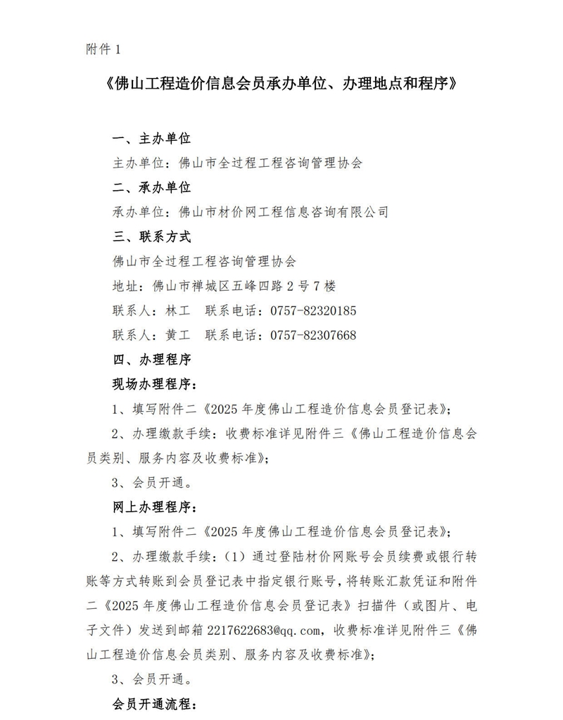 附件1《佛山工程造價(jià)信息會(huì)員承辦單位、辦理地點(diǎn)和程序》