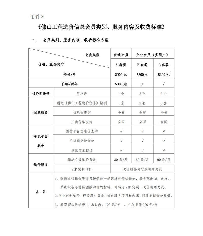 附件3《佛山工程造價(jià)信息會(huì)員類別、服務(wù)內(nèi)容及收費(fèi)標(biāo)準(zhǔn)》