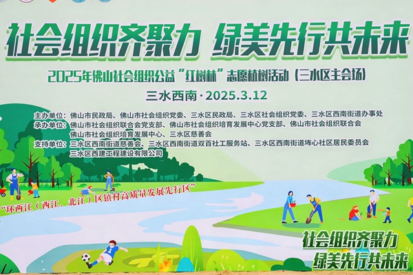 3月12日,由佛山市民政局、佛山市社會(huì)組織黨委、三水區(qū)民政局、三水區(qū)社會(huì)組織黨委、三水區(qū)西南街道辦事處主辦的“社會(huì)組織齊聚力 綠美先行共未來(lái)”2025年佛山社會(huì)組織公益“紅樹(shù)林”首期志愿植樹(shù)活動(dòng)在環(huán)兩江先行區(qū)西南街道老沙島的主會(huì)場(chǎng)上舉行,禪城、南海、順德、高明四個(gè)區(qū)同步設(shè)活動(dòng)分會(huì)場(chǎng)。活動(dòng)共發(fā)動(dòng)180多家社會(huì)組織黨組織、社會(huì)組織及會(huì)員企業(yè)參與,逾700人參與現(xiàn)場(chǎng)植樹(shù)。