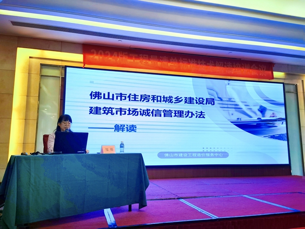 佛山市建設(shè)工程造價服務(wù)中心鄒錦副主任針對《佛山市住房和城鄉(xiāng)建設(shè)局建筑市場誠信管理辦法》,從修改背景、要點(diǎn)內(nèi)容、合同網(wǎng)簽辦理、常見問題解答等方面進(jìn)行了全面的解讀。她強(qiáng)調(diào),完善建筑市場誠信體系是規(guī)范市場行為、優(yōu)化營商環(huán)境的重要抓手,各企業(yè)需以合規(guī)管理為基,以創(chuàng)新實(shí)踐為翼,共同構(gòu)建“守信激勵、失信懲戒”的良性生態(tài)。