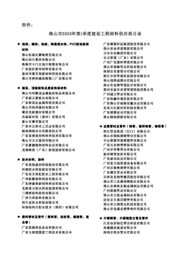 附件:佛山市2025年第1季度建設(shè)工程材料供應(yīng)商目錄