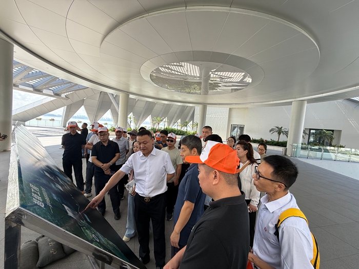 調研組先后參觀了深中大橋、西人工島、海底沉管隧道等深中通道的關鍵節(jié)點,近距離領略“深中巨龍”“灣區(qū)脊梁”的魅力。在西人工島上,工作人員詳細介紹了項目從規(guī)劃設計到建設施工,再到運營籌備的全過程,重點講解了工程建設中遇到的技術挑戰(zhàn)以及創(chuàng)新解決方案,讓調研團隊對這座超級工程有了更全面、深入的認識。