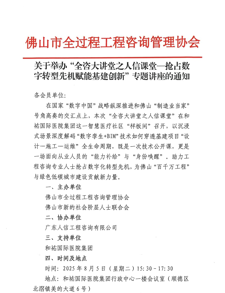 關(guān)于舉辦“全咨大講堂之人信課堂—搶占數(shù)字轉(zhuǎn)型先機(jī)賦能基建創(chuàng)新”專題講座的通知
