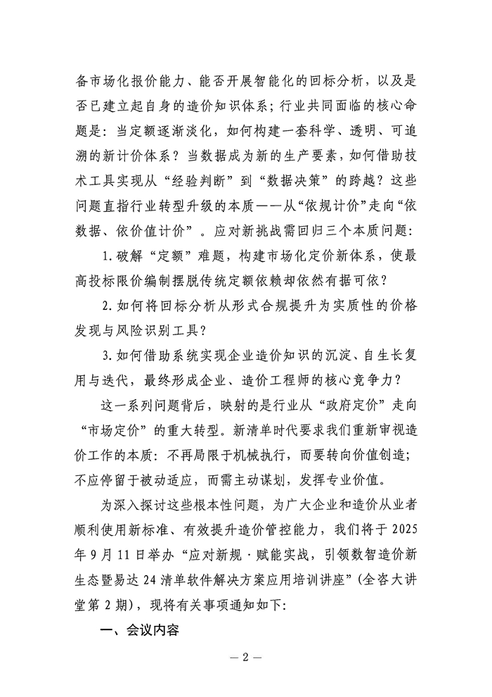 關于舉辦應對新規 · 賦能實戰,引領數智造價新生態暨易達24清單軟件解決方案應用培訓講座的通知