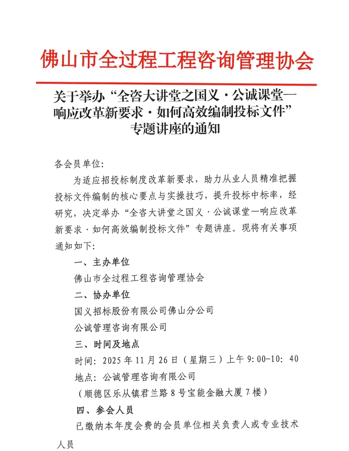 關于舉辦“全咨大講堂之國義·公誠課堂—響應改革新要求·如何高效編制投標文件”專題講座的通知