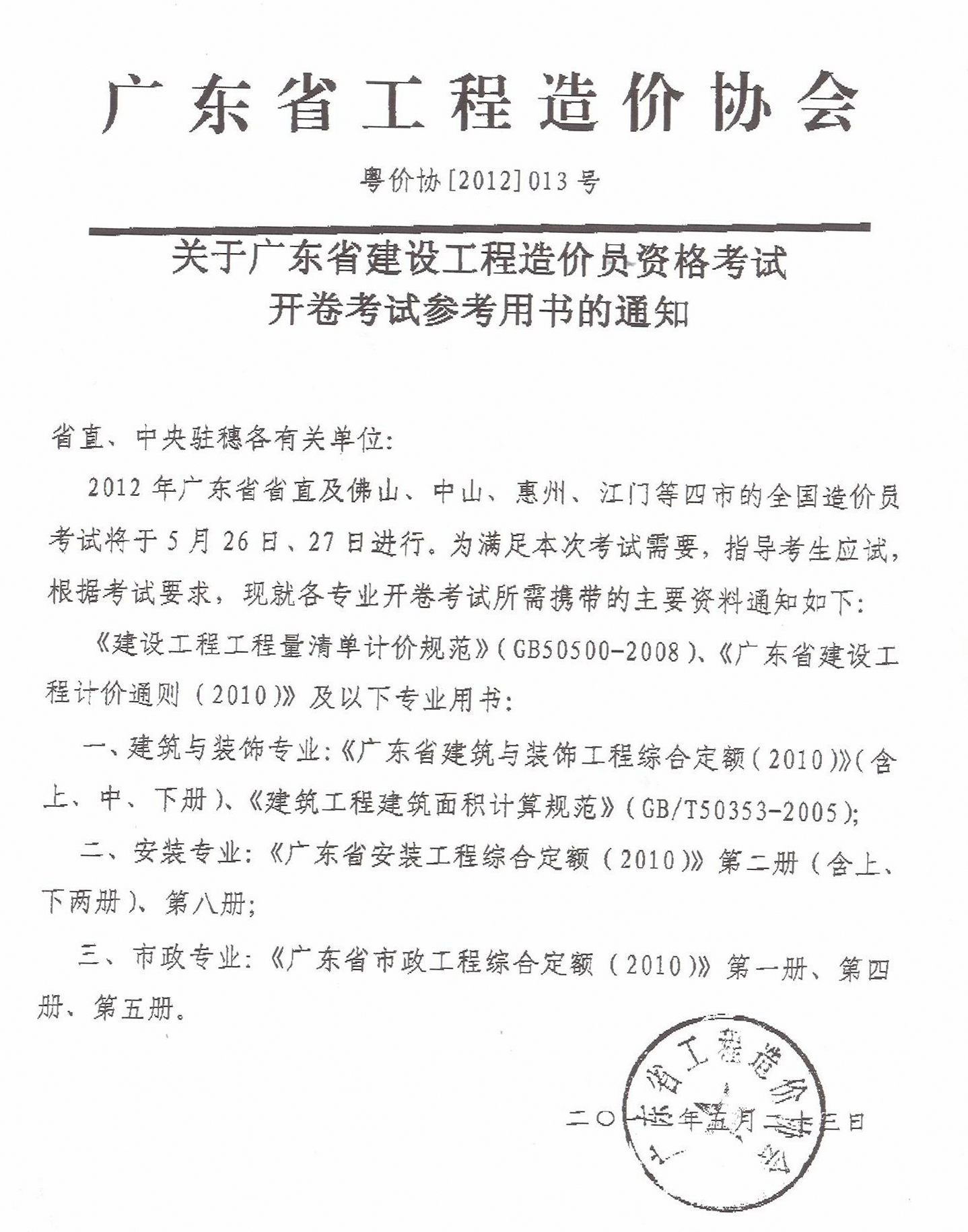 關于廣東省建設工程造價員資格考試開卷考試參考用書的通知