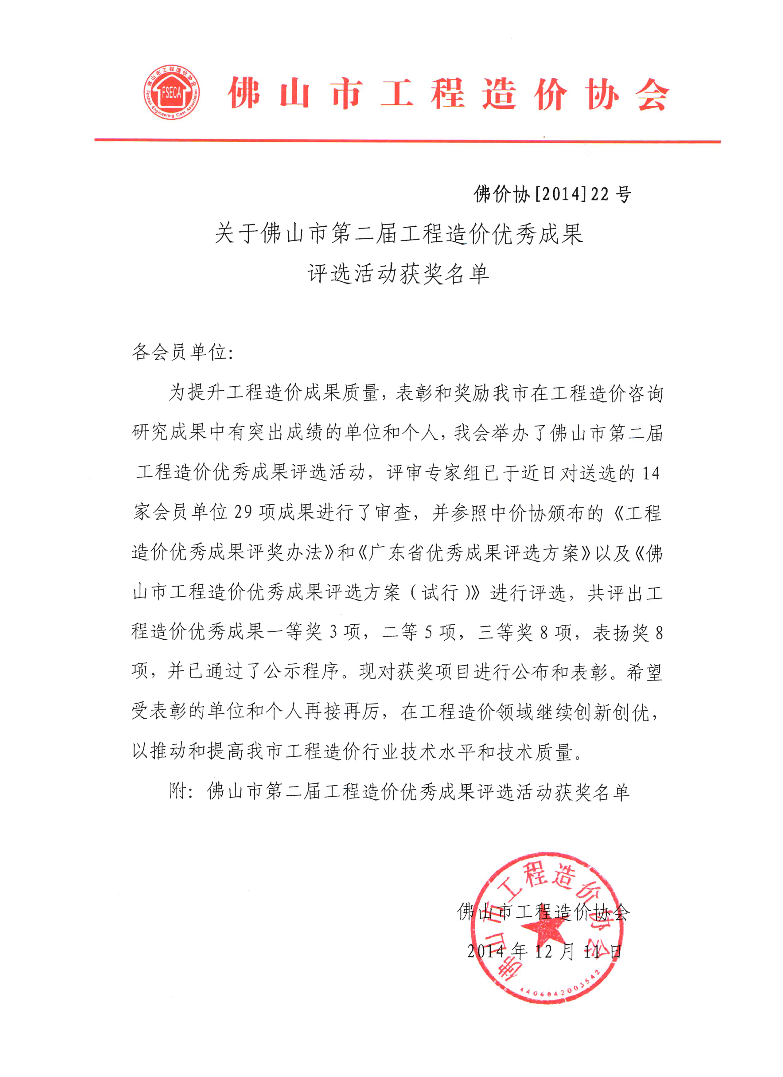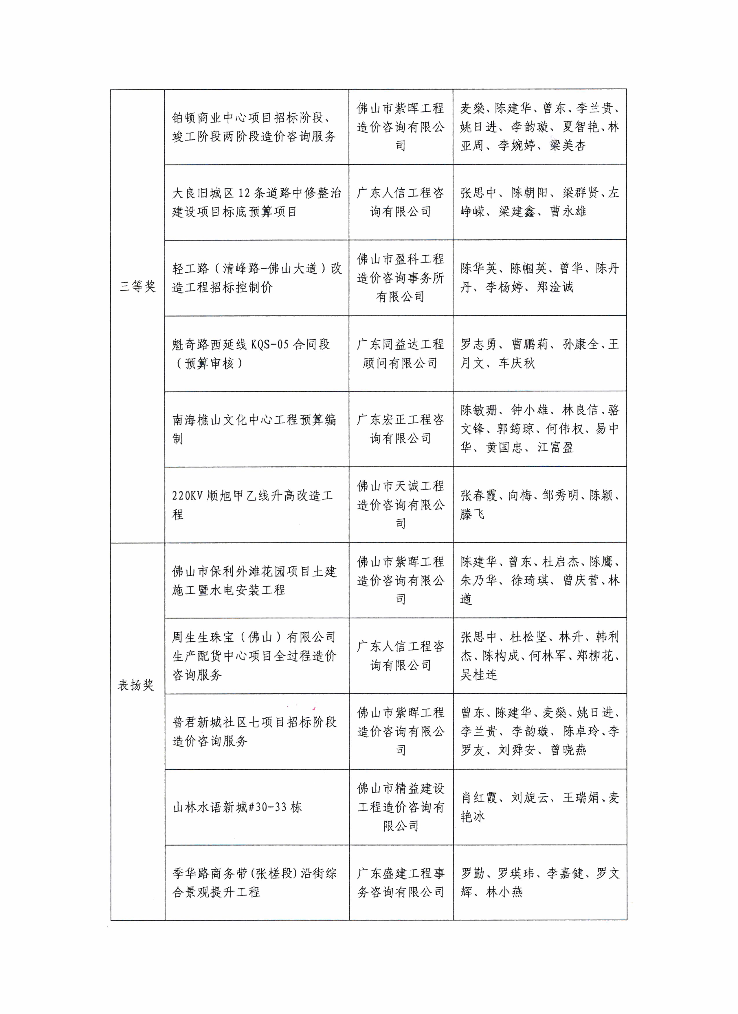 關(guān)于佛山市第二屆工程造價優(yōu)秀成果評選活動獲獎名單