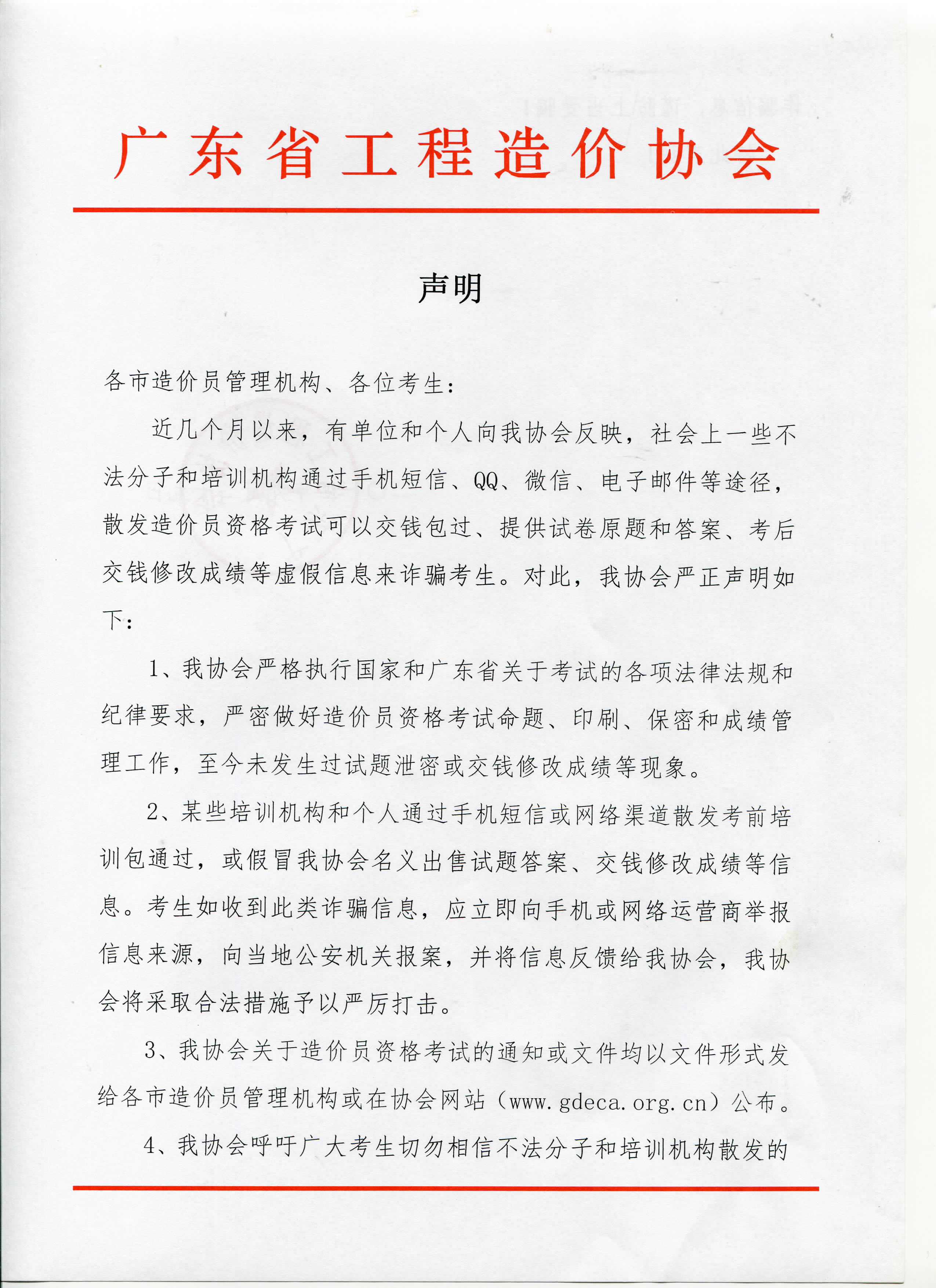 關(guān)于全國(guó)建設(shè)工程造價(jià)員考試的聲明