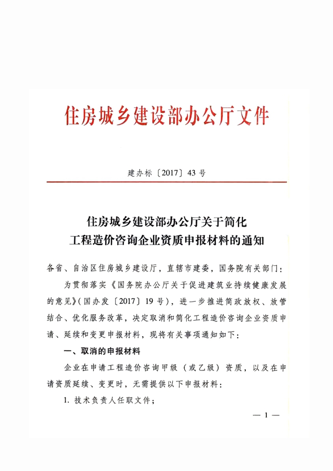 佛山市住房和城鄉建設管理局轉發關于簡化工程造價咨詢企業資質申報材料的通知