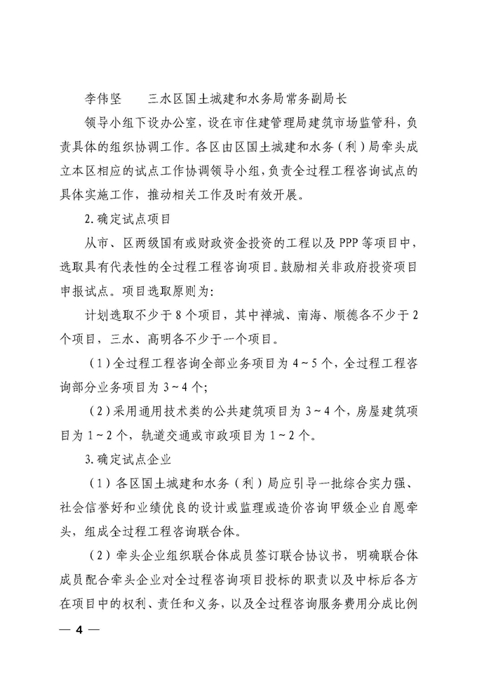 佛山市住房和城鄉建設管理局關于印發《佛山市推進全過程工程咨詢試點工作實施方案》的通知