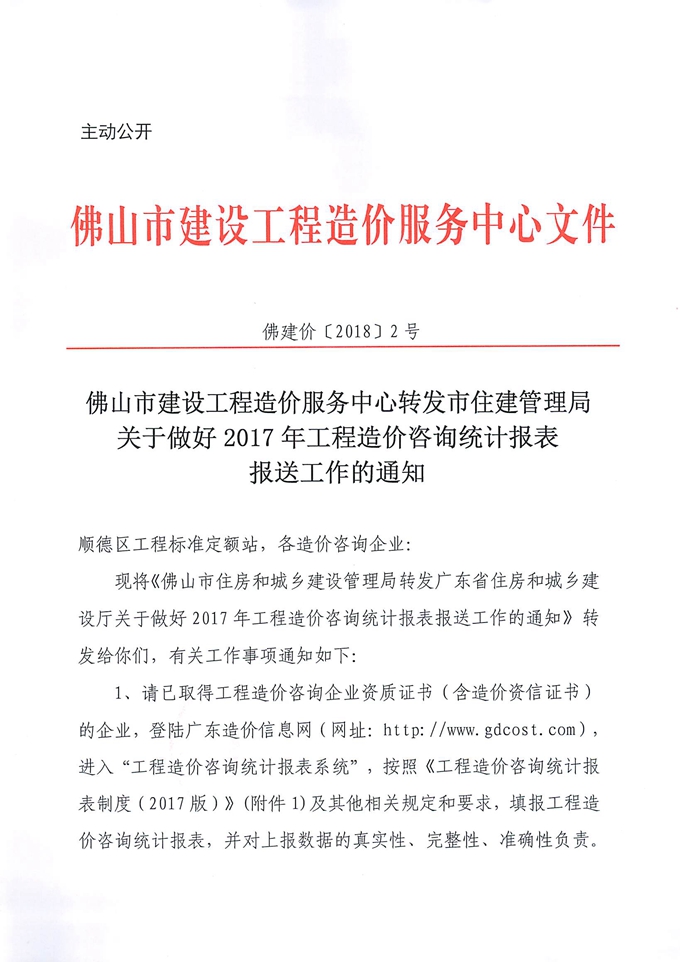 佛山市建設工程造價服務中心轉發市住建管理局關于做好2017年工程造價咨詢統計報表報送工作的通知