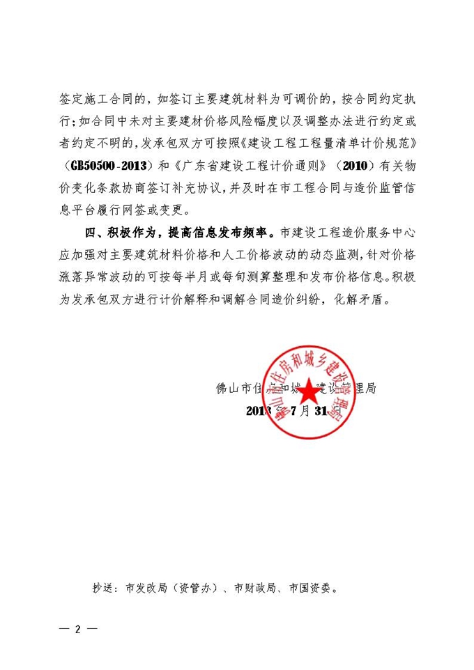 佛山市住建管理局關于加強建筑材料價格風險管控有關事項的通知