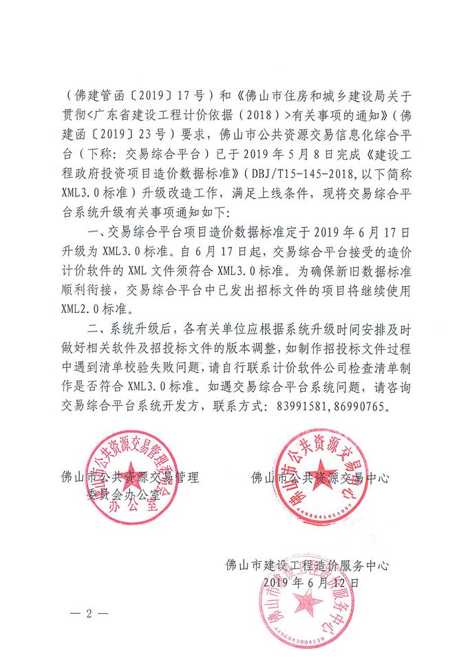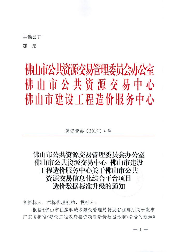 佛山市公共交流交易管理委員會辦公室 佛山市公共資源交易中心 佛山市建設工程造價服務中心關于佛山市公共 資源交易信息化綜合平臺項目造價數據標準升級的通知