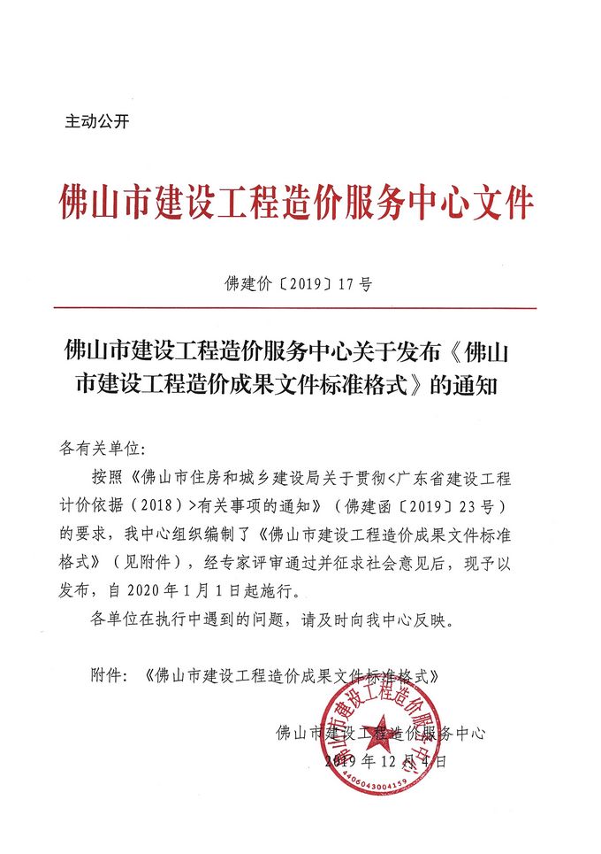 佛山市建設工程造價服務中心關于發布《佛山市建設工程造價成果文件標準格式》的通知