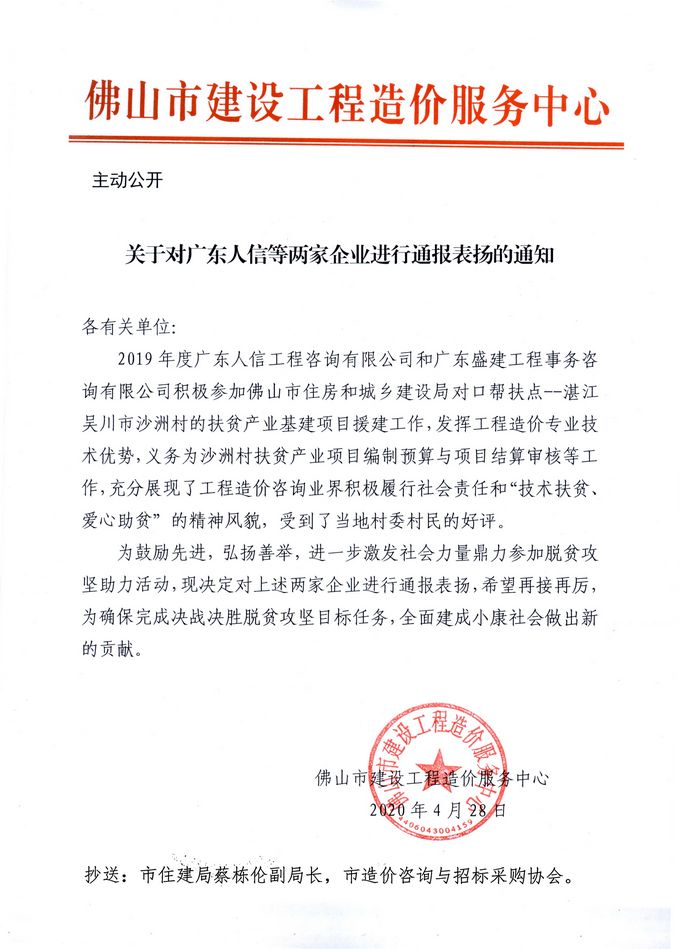 關(guān)于對(duì)廣東人信等兩家企業(yè)進(jìn)行通報(bào)表?yè)P(yáng)的通知