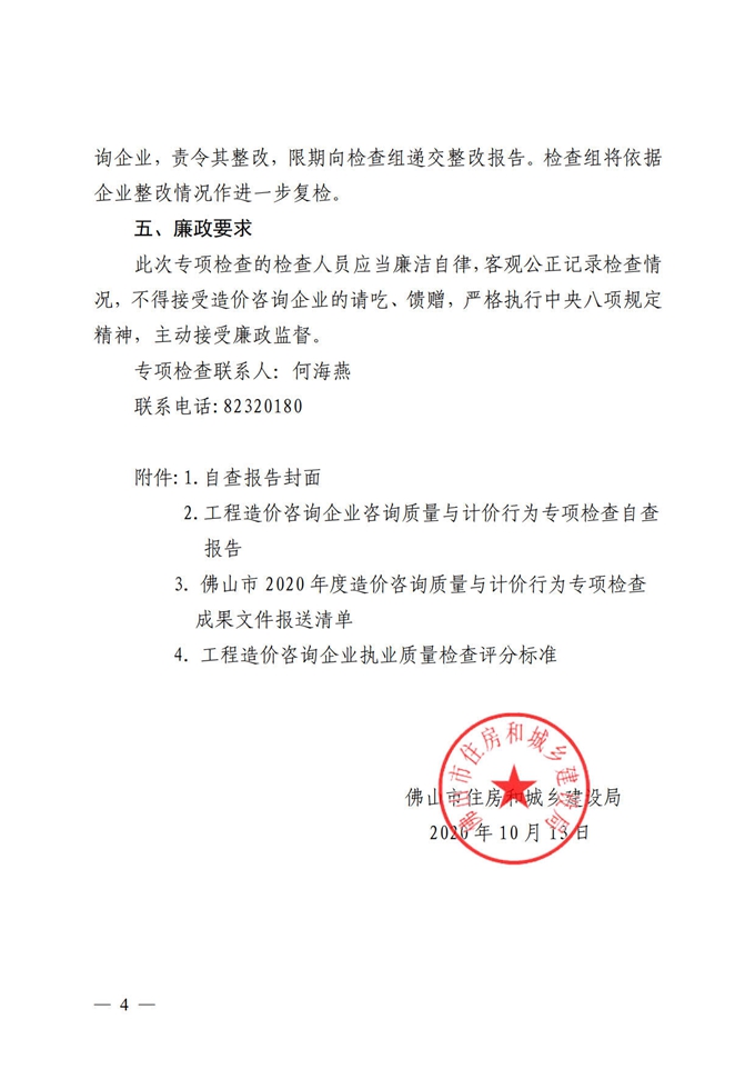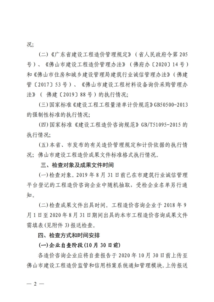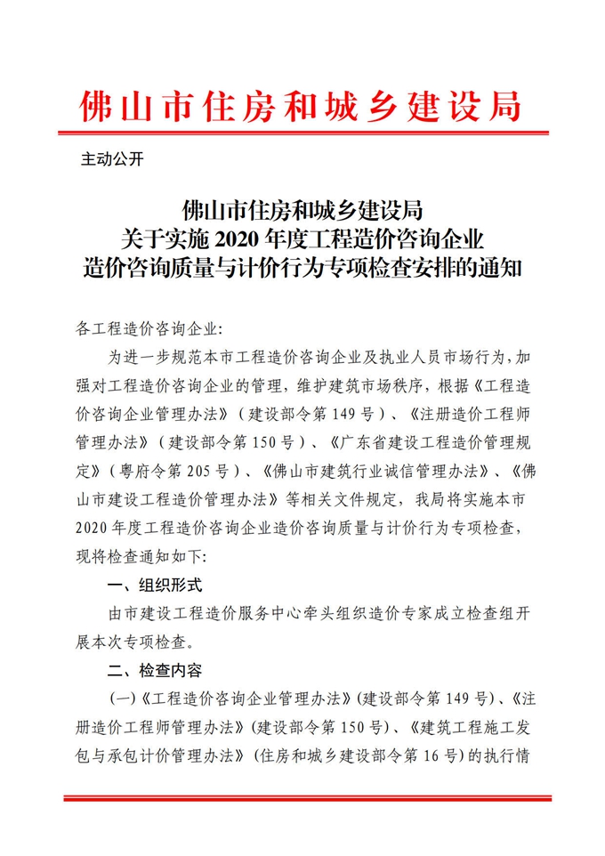 佛山市住房和城鄉(xiāng)建設(shè)局關(guān)于實施2020年度工程造價咨詢企業(yè)造價咨詢質(zhì)量與計價行為專項檢查安排的通知