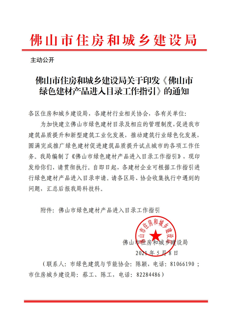 佛山市住房和城鄉(xiāng)建設(shè)局關(guān)于印發(fā)《佛山市綠色建材產(chǎn)品進(jìn)入目錄工作指引》的通知