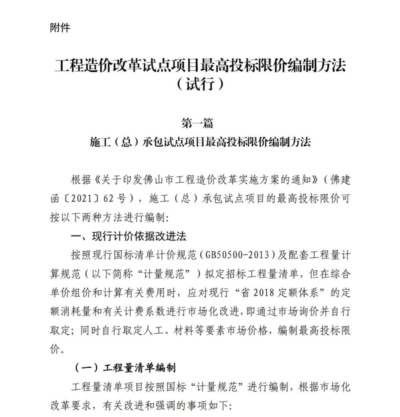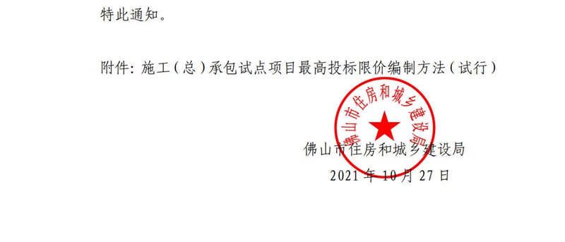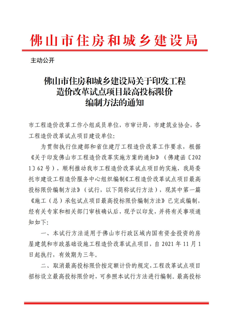 佛山市住房和城鄉(xiāng)建設(shè)局關(guān)于印發(fā)工程造價(jià)改革試點(diǎn)項(xiàng)目最高投標(biāo)限價(jià)編制方法的通知