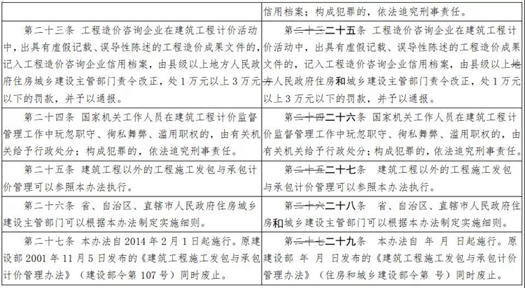 一是增加關于工期的條款。二是刪除原辦法中有關工程造價鑒定內容。三是規范文字表述。將“住房城鄉建設主管部門”統一修改為“住房和城鄉建設主管部門”;將“縣級以上地方人民政府”統一修改為“縣級以上人民政府”;將“工程計價有關規定和市場價格信息”統一修改為“工程計價依據”。