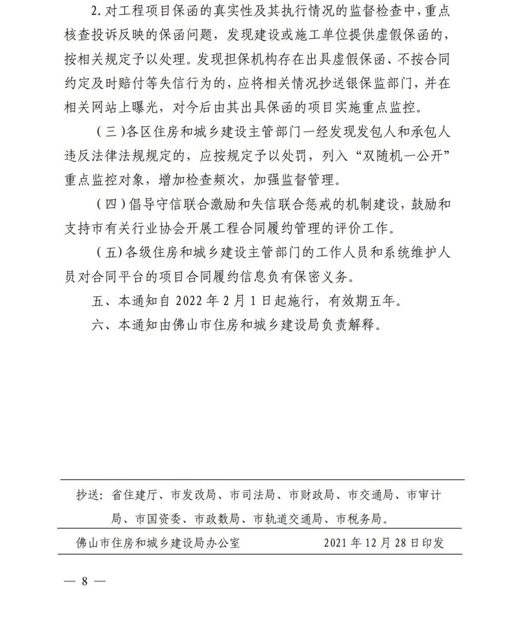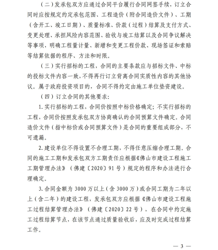 佛山市住房和城鄉建設局印發《關于加強房屋建筑和市政基礎設施工程合同履約管理的通知》的通知