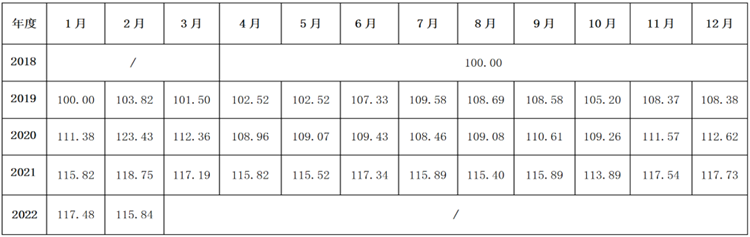 (一)人工價(jià)格指數(shù)見(jiàn)下表: