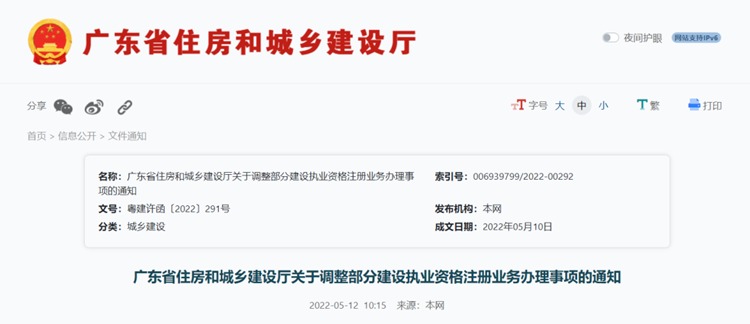 轉(zhuǎn)發(fā) | 廣東省住建廳:調(diào)整部分建設(shè)執(zhí)業(yè)資格注冊業(yè)務(wù)辦理事項(xiàng),5月16日起生效!