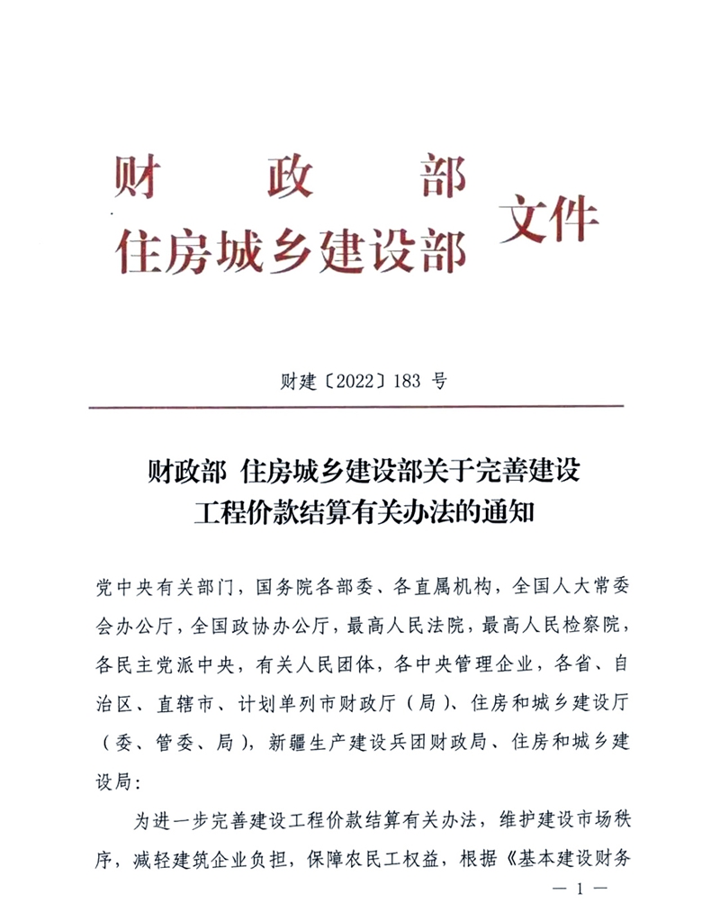 轉發 | 財政部 住房城鄉建設部關于完善建設工程價款結算有關辦法的通知