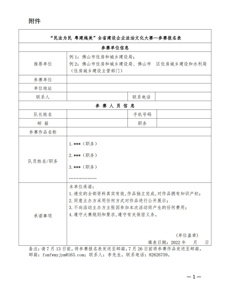 附件:“民法為民 粵建越美”全省建設企業法治文化大賽—參賽報名表