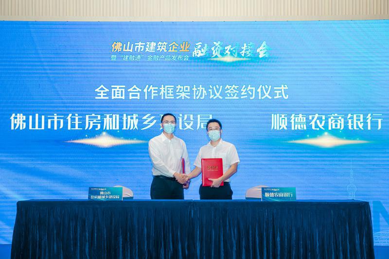 8月22日,佛山市建筑企業融資對接會暨“建融通”金融產品發布會舉行。市住房和城鄉建設局與順德農商銀行、招商銀行佛山分行分別簽署全面合作框架協議,兩家銀行將在今后3年為佛山優質建筑企業提供不少于200億元的融資支持。