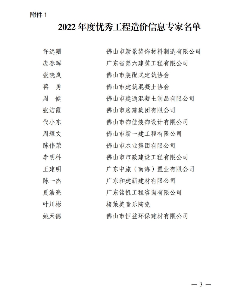 關于表彰2022年度優(yōu)秀工程造價信息專家暨聘任2023年度工程造價信息專家的通知