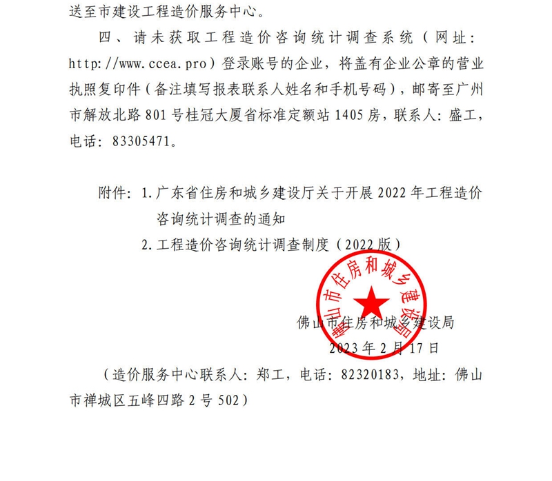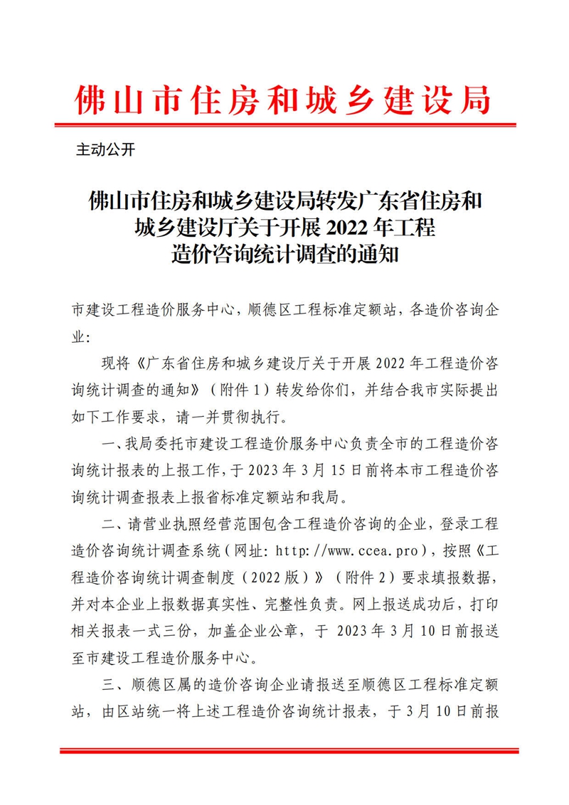 轉發 | 佛山市住房和城鄉建設局轉發廣東省住房和城鄉建設廳關于開展2022年工程造價咨詢統計調查的通知