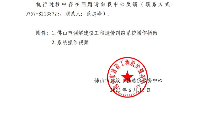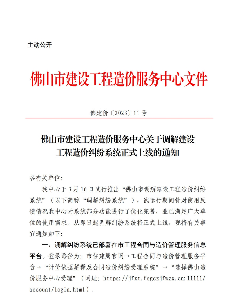 佛山市建設工程造價服務中心關于調解建設工程造價糾紛系統正式上線的通知