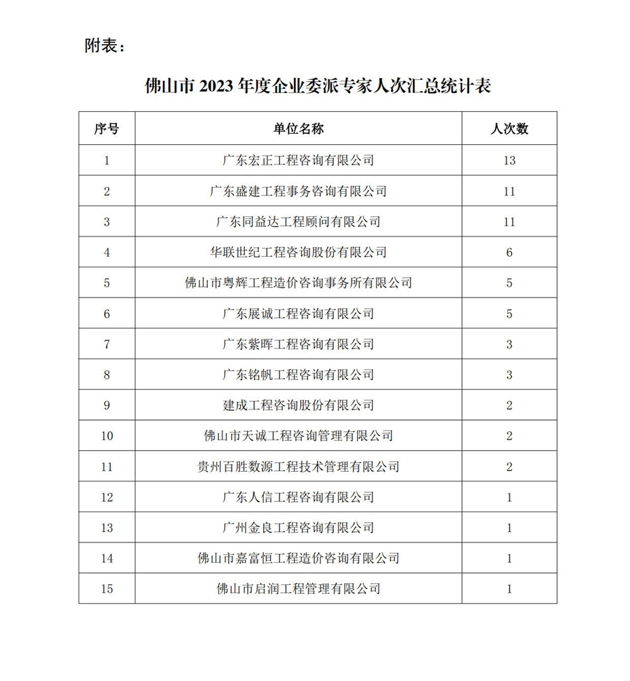 轉發 | 佛山市建設工程造價服務中心關于公布2023年度企業委派專家人次情況的通知