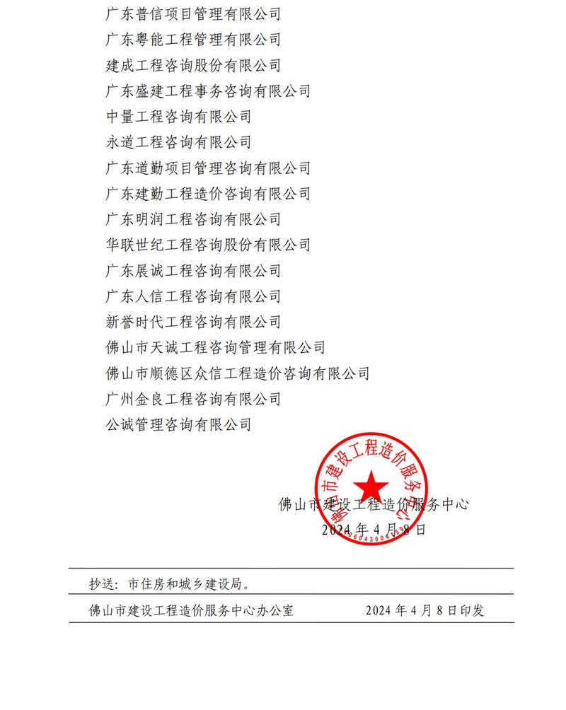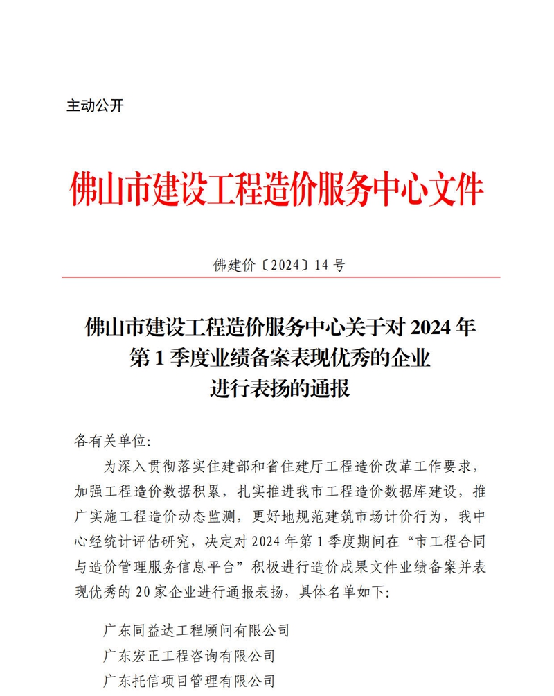轉發 | 佛山市建設工程造價服務中心關于對2024年第1季度業績備案表現優秀的企業進行表揚的通報