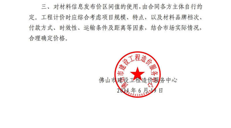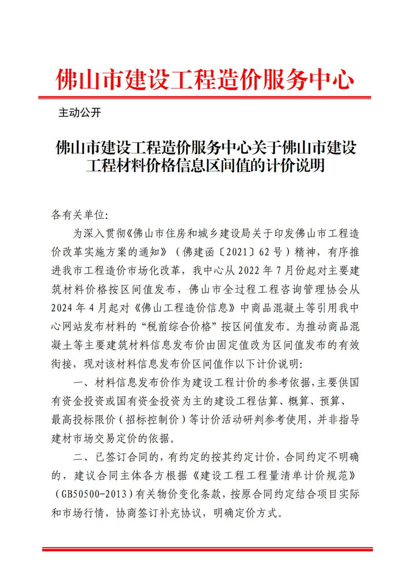 佛山市建設工程造價服務中心關于佛山市建設工程材料價格信息區間值的計價說明
