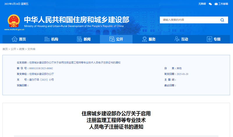 住建部 | 關(guān)于啟用注冊(cè)監(jiān)理工程師等專(zhuān)業(yè)技術(shù)人員電子注冊(cè)證書(shū)的通知