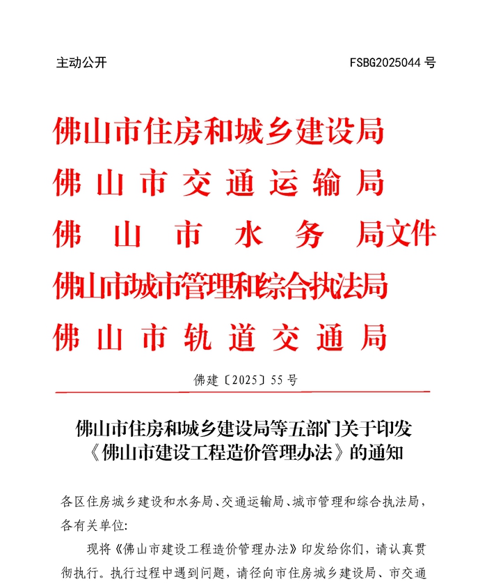 佛山市住房和城鄉(xiāng)建設(shè)局等五部門關(guān)于印發(fā)《佛山市建設(shè)工程造價管理辦法》的通知