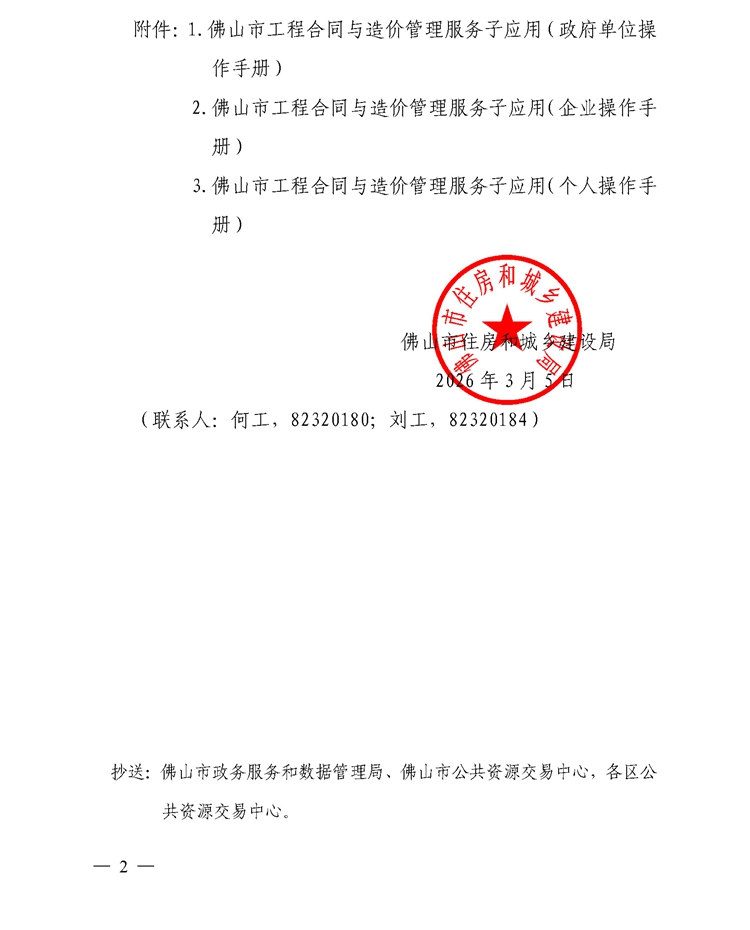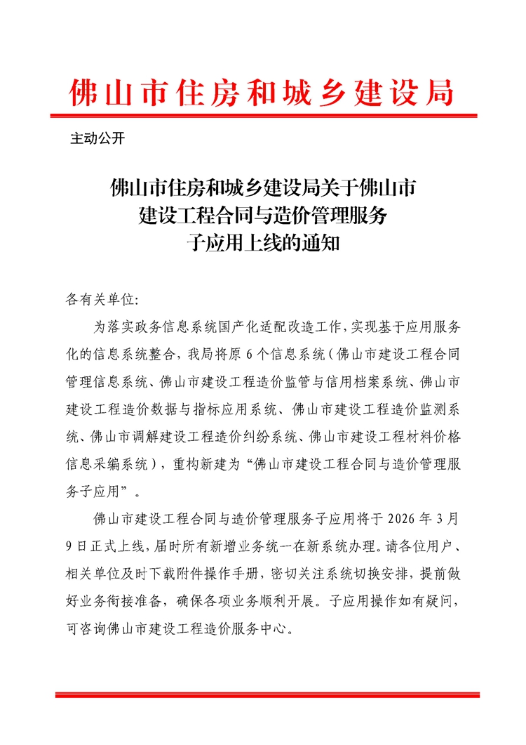 轉發 | 佛山市住房和城鄉建設局關于佛山市建設工程合同與造價管理服務子應用上線的通知