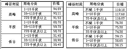 ?。◤模丛拢比掌鸢惭b分時(shí)計(jì)量裝置后下一計(jì)費(fèi)周期執(zhí)行,表中電價(jià)由電度電價(jià)、城市建設(shè)附加費(fèi)、三峽工程建設(shè)基金構(gòu)成)