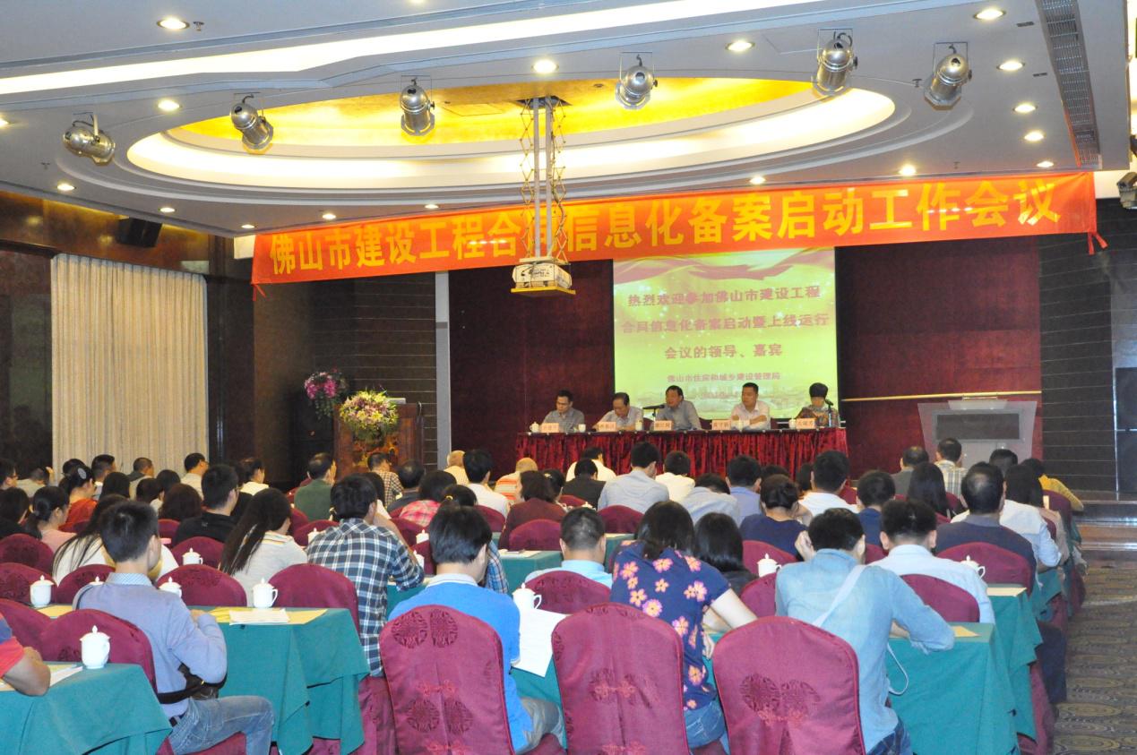 2014年11月28日下午,佛山市住建管理局在佛山佳寧娜酒店五樓會議廳召開了建設工程合同信息化備案啟動暨上線運行會議。市、區兩級建設行政主管部門及造價管理機構負責人,市發改局(市公資辦)、市財局、市公共資源交易中心、市代建項目管理中心、建設單位、施工企業、勞務分包企業代表等200多人參加了會議。會議還特別邀請到了省住建廳建筑市場監管處廖江陵處長和省建設工程造價總站黃守新站長出席。會議由市住建管理局建筑市場監管科科長古瑞芳主持。會議作了施工合同備案管理信息系統演示和施工合同備案準備工作報告。市住建管理局副局長林振漢作了重要講話,他指出實施施工合同網簽備案勢在必行,目的就是要規范施工合同簽訂和履行,杜絕“陰陽”合同,保護合同各方主體的合法權益,規范建筑市場秩序。他強調我市施工合同備案系統的建設啟用,是我局深入貫徹住建部和省住建廳工程質量治理兩年行動方案,嚴厲打擊建筑施工轉包、違法分包和掛靠行為,加快推進和完善我市建筑市場監管一體化工作平臺建設的重要舉措。行業主管部門要充分利用合同備案信息平臺,督促施工合同各方落實主體責任,加強合同履約監管,對于違法分包轉包行為采取零容忍態度,發現一起查處一起,絕不手軟,確保我市工程質量治理取得成效。