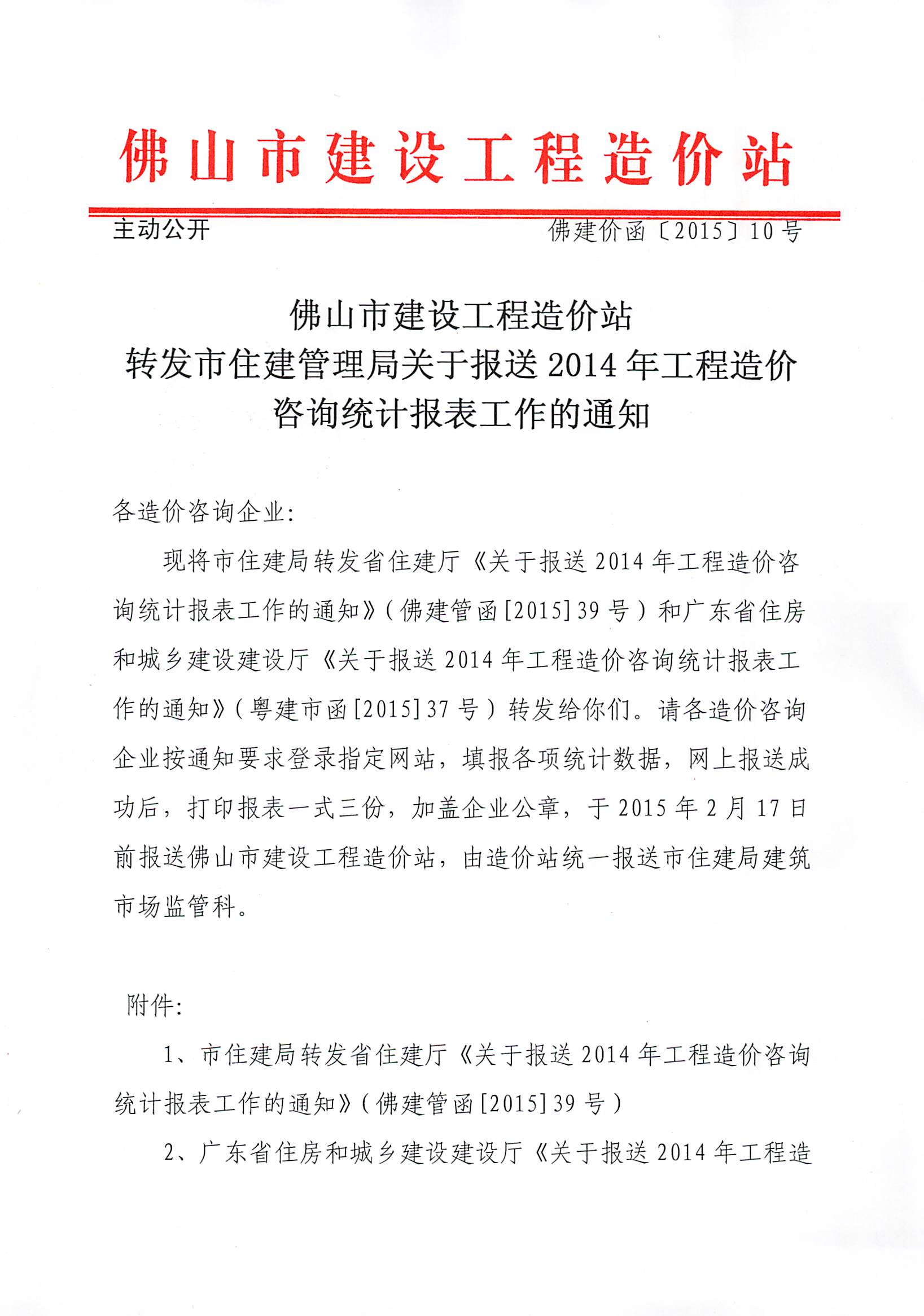 佛山市建設(shè)工程造價站轉(zhuǎn)發(fā)市住建管理局關(guān)于報送2014年工程造價咨詢統(tǒng)計報表工作的通知