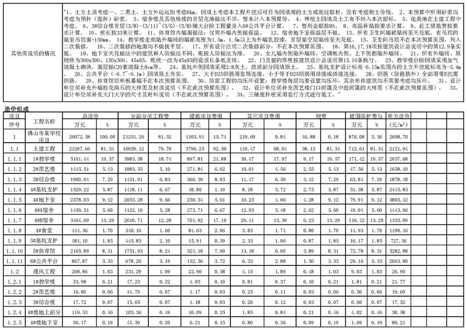 佛山市2015年第3季度技術經濟指標分析—某學校項目案例
