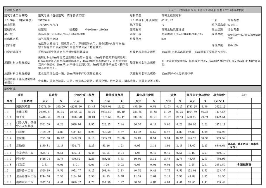 佛山市2016年第1季度技術經濟指標分析—某醫院項目案例