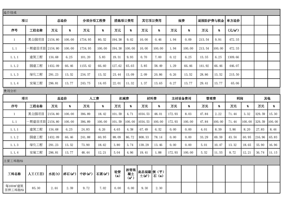 佛山市2017年第2季度技術經濟指標分析—某公園項目案例