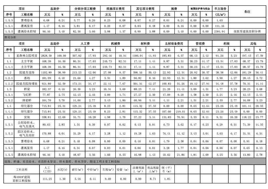 佛山市2018年第4季度技術經濟指標分析—某森林公園項目