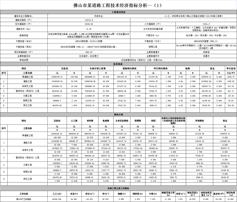 佛山市某道路工程技術(shù)經(jīng)濟(jì)指標(biāo)分析—(1)